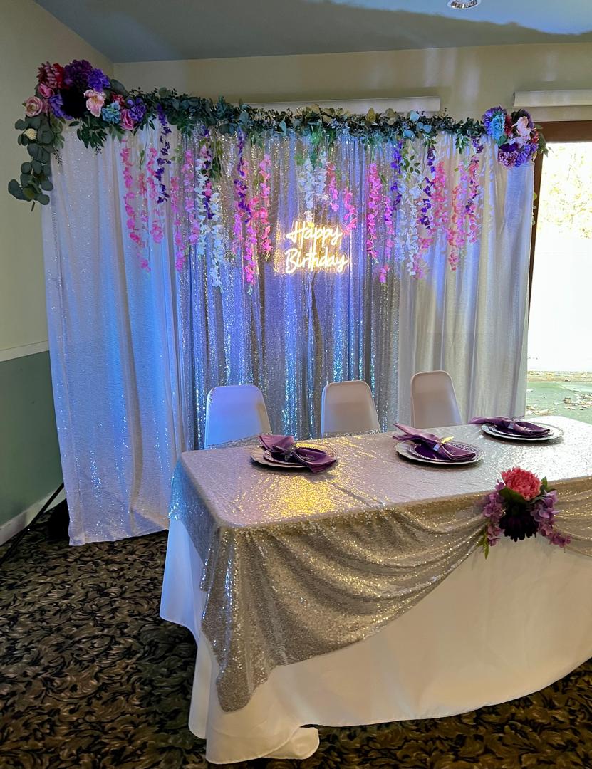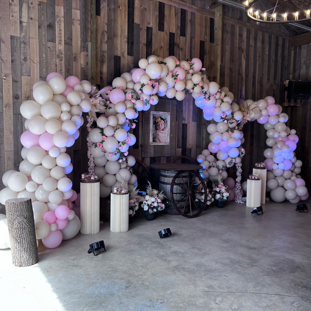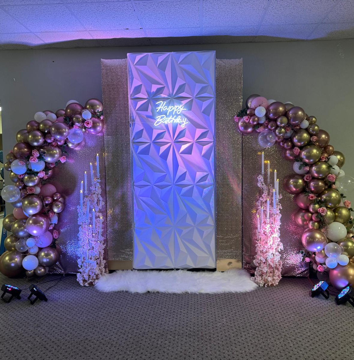 Desde impresionantes arreglos con globos y centros de mesa florales hasta telones de fondo y arreglos de mesa personalizados, aportamos creatividad y estilo a cada evento. Permítanos transformar su espacio en una experiencia mágica que dejará recuerdos duraderos para usted y sus invitados!"